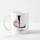 Taza De Café Inicial L Floral Rosa Monogramada