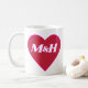 Un regalo audaz para el El día de San Valentín. Corazones rojos y rosados y negritas iniciales de texto de monomgrama declaran tu amor! Esta taza de café es un excelente regalo el día de San Valentín para el marido, el novio, la esposa o la novia. Fácilmente personalizable con dos iniciales. Si necesita ayuda para personalizar este producto, utilice el botón de mensaje que aparece a continuación.
