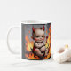 Este adorable bebé diablo se sienta entre llamas, exudando un aura de travesura y encanto. Con las mejillas rosadas y una sonrisa lúdica, esta pequeña parece encarnar la frase " diabólicamente lindo ". El contraste entre el aspecto inocente del bebé y el entorno lleno de fuego crea una escena humorística y caprichosa.
