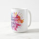 Decorative International Women's Day 2026 coffee mug with colourful paint splash background in pink, blue, lilac and yellow. International Women's Day is a global day celebrating women's achievements politically, socially and economically, supporting advancement of women and to educate and to raise awareness of women's equality around the world.
