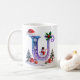 Taza De Café Iridescent Christmas Letter U with Snowman