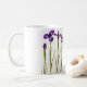 Taza De Café Iris púrpuras aislados en un fondo blanco