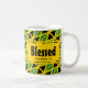 Esta es una taza patriótica JAMAIQUINA vibrantemente coloreada en los colores nacionales de amarillo, verde y negro, en un patrón de baldosas en un fondo amarillo. El texto principal dice BENDICIADO y la referencia a las Escrituras es ÉFESIANOS 1:3. Esta taza sería un excelente regalo para el patriótico JAMAIQUINO por cumpleaños, Navidades, Día de la Madre, Día del Padre, Día de la Independencia JAMAIQUINA. También sería un gran regalo para el Mes de la Historia Negra o durante Kwanzaa. Hay muchas versiones disponibles en la Colección JAMAICA de Diseños Bereneses, junto con muchos productos con los que puedes crear impresionantes juegos de regalos.