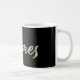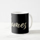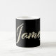 Eine sehr schöne edle personalisierte Tasse / Kaffeetasse / Teetasse im whitegold Lettering Look auf schwarz für James.