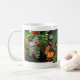 Disfrute de la belleza de mariposas. Taza de café embellecida con las mariposas en un jardín.