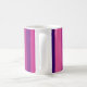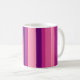 Esta taza tiene un diseño de rayas verticales de seis tonos de violeta.