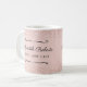 Un regalo preciado para una empresaria jefa. Si una mujer en tu vida ha lanzado un nuevo negocio, aquí tienes el regalo ideal para las fiestas o aniversario del negocio... una taza de café personalizada con su nombre en tipografía de letra cursiva elegante con el título "Directora Ejecutiva Jefa" justo debajo. Sobre un delicado fondo rosa suave, nuestra taza de Directora Ejecutiva Jefa femenina presenta capas de brillo rosa suave en la parte superior e inferior para añadir destellos. Puedes revisar fácilmente el texto utilizando la plantilla de personalización.