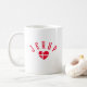 Jerup Dinamarca. Texto rojo, bandera cardíaca Dinamarca.