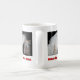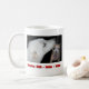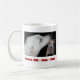 Una imagen divertida que lo dice todo. Un pastor alemán blanco grande infringe sobre el espacio de una pequeña chihuahua minúscula