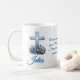Elevate your daily routine with a mug that blends timeless elegance and heartfelt meaning. This ceramic mug features a stunning arrangement of blue and silver roses—symbols of serenity, loyalty, and grace—on both the right and left sides for a luxurious, eye‑catching look. Change the placeholder text "Julia" to the new owner's name. You can also change the Scripture verse, John 13:34, which is printed in the center of the mug. A refined floral motif that feels both modern and classic, ideal for gifting or personal inspiration, offering a daily reminder of compassion and connection. Perfect for birthdays, Mother’s Day, faith-based gifts, weddings or anniversaries, and personal encouragement. This mug isn’t just drinkware—it’s a message of love wrapped in beauty. A thoughtful gift that warms the hands and the heart.
