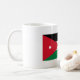 La bandera de Jordania, adoptada oficialmente el 2 de septiembre de 1920, se basa en la bandera de la Revuelta Árabe contra el Imperio Otomano durante la Primera Guerra Mundial. La bandera consiste en bandas horizontales en blanco, negro y verde que están conectadas por un chevron rojo. Los colores son los colores panárabes, que representan los califatos Abbasid (banda negra), Umayyad (banda blanca) y Fatimid (banda verde). El chevron rojo es para la dinastía Hachemita y la Revuelta Árabe.