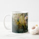 Cita inspiradora cristiana Escritura tazón de café representa una hermosa pintura acuarela de un lago enmarcado con flores artísticas y follaje. Presenta una porción de la Biblia Verse Juan 7:37 en las palabras de Jesús, "Que venga a beber cualquiera que tenga sed".
