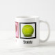 Peace Love Tennis mug con un signo de paz, corazón y pelota de tenis. ¿Eres el profesional del tenis en tu instituto o universidad? Muéstralo.