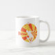La taza muestra un patinador intrépido saltando en amarillo y naranja.