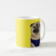 Una linda taza ilustrada que retrata un pug llamado Arnold del libro "Just Me" de Ian M. Snyder