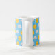 Repeat pattern of happy suns and sad rain clouds on a blue sky background for changeable springtime weather.