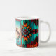 ¡Este es un único "uno de bondad" en el suroeste de Kokopelli Coffee Mug! Cuenta con un Kokopelli de dos suroeste que toca la flauta y baila bajo el sol en un fondo turquesa y Naranja de atardecer... ¡Rodeado por un borde suroeste en turquesa, Naranja y negro! Diseño De Arte Original Del Artista Kerry Miller.