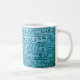 Una jarra super fresca con antiguos jeroglíficos grabados en piedra en azul.
