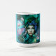 El rostro de una mujer está rodeado de elementos florales vivos, de tonos verdes y azules, entrelazados con flores rosas. Su cabello se mezcla perfectamente con patrones intrincados y diseños giratorios, evocando un sentido de naturaleza y fantasía.