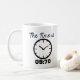 La hora es 09:70, en término análogo. La imagen muestra una cara de reloj en blanco y negro con las manos apuntando a las 9:70. La frase "El momento es" está escrita sobre el reloj en azul y negro. El reloj está puesto en un fondo transparente. El tiempo inusual mostrado en el reloj se interpreta como un recordatorio de que el tiempo siempre avanza, aunque parezca que se queda quieto.