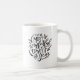 Esta taza de café blanco y negro del día de fiesta ofrece el navidad la cita "es la época más maravillosa del año." letras y caligrafía disponible y puntillas ilustradas del pino.