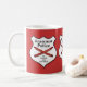 ¡La policía de la gramática está aquí! Una taza de café divertida para el profesor o el empollón de la gramática, mostrando la insignia 3 formó los gráficos blancos con los creyones y la "policía rojos cruzados de la gramática para servir y para corregir" en tipo negro. El color de fondo es adaptable en el menú del corregir.