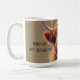 Una raza única de ganado de las tierras altas acentúa este diseño de tazón de café, adornado con una cobertiza de las tierras altas con sus impresionantes cuernos y su piel oscura, originaria de las tierras altas de Escocia. El mensaje es personalizable a sus preferencias. 'Moo-dy pero Majestic diciendo agrega un toque de humor de vaca.