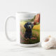 Cachorro de Labrador Retriever en la granja con granero y flores. Perros de granja trabajadores, pastores y cazadores. Agrega esta imagen a otros productos. Agrega tu propio texto también. Cambia el color de fondo.