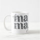 Un bonito diseño en blanco y negro con la palabra "mamá" en elegantes letras con motivos de encaje. Cada carta está adornada con delicados detalles de encaje floral y atada con elegantes arcos de cinta, creando un homenaje elegante y sincero a la maternidad.