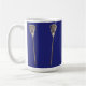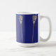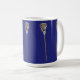 Logotipo deportivo de lacrosse creativo con diseño de palo lax y bola en el campo de azul real.