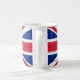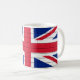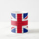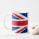 La bandera británica de Union Jack en el rojo, el blanco patriótico y el azul pintados encendido a una pared de ladrillo.