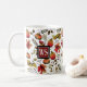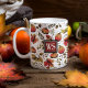 Este elegante tazón de café otoñal de las calabazas de cosecha otoñal presenta un patrón otoñal de ilustraciones dibujados a mano en amarillo de cosecha, verde salvia, naranja quemado y blanco. El diseño incluye calabazas, hojas de otoño y bayas, que capturan el espíritu del otoño. Añada su monograma personalizado para crear una taza de café de caída única, regalo de Acción de Gracias o accesorio de cocina de temporada.