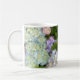 Características del este diseño una pintura de la acuarela de hydrangeas. Ponga un arreglo del hydrangea en la taza y preséntelo a su mamá, él hace una manera hermosa de anunciar su embarazo.