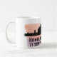 Coffee mug presenta la silueta de la ciudad honolulu Hawaii con salpicaduras de acuarela y coordenadas de mapa de latitud y longitud. Un recuerdo perfecto para bodas, vacaciones y más.