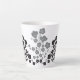 デフォルメしたラブリーな花のカフェラテマグです。あえてバックは白とし、取っ手付近の色や柄の断ち落としの違和感をなくしました。クールなブラック&グレーでおしゃれに。