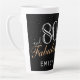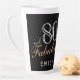 80 y Fabulous Elegant Black 80th Birthday Photo Latte Mug. El fondo es negro. Personaliza la taza con tu foto, tu nombre y haz tu propio regalo de cumpleaños número 80 para una mujer.