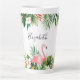 Acuarela Floral tropical, flamenco rosado, nombre personalizado café latte