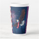 Taza De Café Latte Águila calva volando con bufanda y fuegos artifici