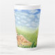 Taza De Café Latte Amanecer en el Ilustracion de hierba