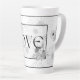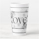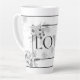 'Amor' latte mug en diseño floral blanco y negro.
