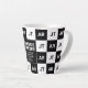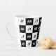 Amigos monocromáticos y monocromáticos de diseño FOREVER latte mug, diseñados con un doble monograma en un efecto tablero de ajedrez. Estos monogramas son personalizables, por lo que puede reemplazarlos con sus iniciales y las de su amigo/pareja/cónyuge. O simplemente puede borrar. En la plaza central, el texto lee AMIGOS PARA SIEMPRE, en negrita y blanca tipografía, y debajo hay una cita inspiradora basada en los proverbios 17:17, que dice A UN VERDADERO AMIGO LEAL EN TODO MOMENTO NO IMPORTA CUÁL SEA LA SITUACIÓN. Este texto es PERSONALIZABLE, así que puedes crear tu propio texto, por ejemplo, agregar tu nombre o nombres, escribir sobre una memoria especial, o agregar tu verso de la Biblia preferido o un dicho motivacional. El fondo blanco se puede cambiar a cualquier color pulsando sobre Personalizar Más adelante y seleccionando de la paleta de colores. Hay regalos coincidentes disponibles.