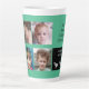 Idea de regalo de café latte Mug. Me encanta ser abuelo. Reemplace las 4 fotos de los nietos por las suyas y añada sus nombres. Verde y blanco, con cuatro fotos y formas de flecha.