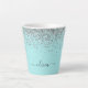 Aqua Azul - Turquesa y Brillo Plateado Destellante Monograma Nombre Taza de Café Latte. Esto hace el regalo perfecto para cumpleaños 16, boda, despedida de soltera, aniversario, baby shower o fiesta de soltera para alguien que ama el glamour de lujo y estilos chic.