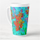 Taza De Café Latte Aqua Tropical con flores amarillas y Naranjas