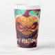 Taza De Café Latte Asustada Naranja Calabaza con cara, Halloween