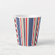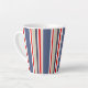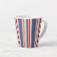 Elegante taza náutica a rayas. Audaces rayas marineras en rojo, blanco, azul, beige y gris.