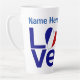 Esta gran taza de café con leche personalizada incluye la palabra "AMOR" en letras azules, con una bandera francesa en forma de corazón como "O". Programas de diseño en dos lados de la taza. Es un gran regalo para las celebraciones del Día del Padre, el Día de la Madre o el Día de la Bastilla. Perfecto para reuniones de amigos o familiares, también hace un Navidad genial o un regalo de Hanukkah.