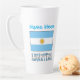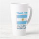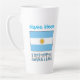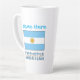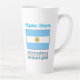 La gran taza de latte personalizada presenta la bandera azul y blanca argentina con la palabra ARGENTINA debajo. Un lugar para añadir tu nombre, en letras azules, te da un toque personalizado o un regalo creativo. La bandera tiene un sol amarillo con la cara de un hombre en el centro. A veces, el argentino se usa en lugar del argentino. Un delicioso regalo para el cambio de hogar. Divertido en reuniones de amigos o familiares y clubes o eventos de grupos de viajes.