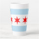Latte Mug con bandera de la ciudad de Chicago, Illinois, bandera de rayas blancas y azul claro con cuatro estrellas rojas