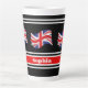 Bandera del Reino Unido personalizada Latte Mug. Personalizar con tu nombre para una moda de aspecto jovial.